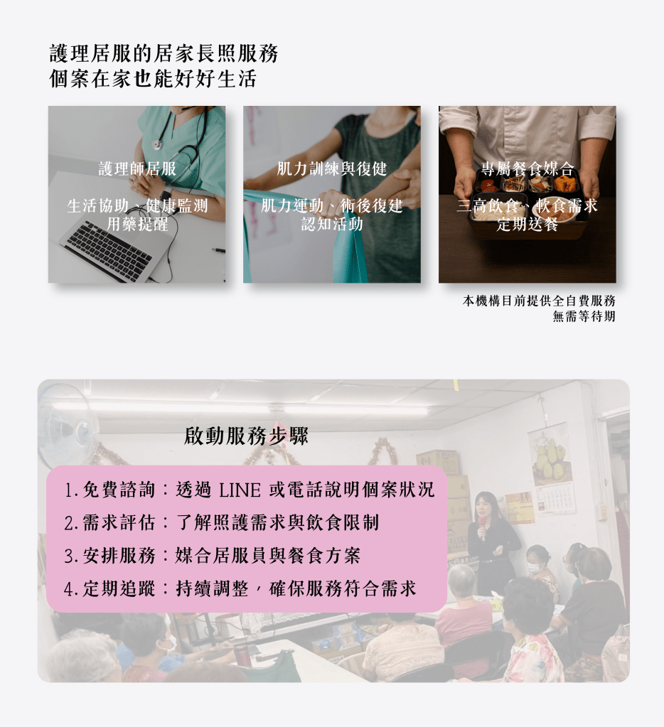 3.專屬餐食免費媒合(三高、肌少症、癌症、失智客制餐食)